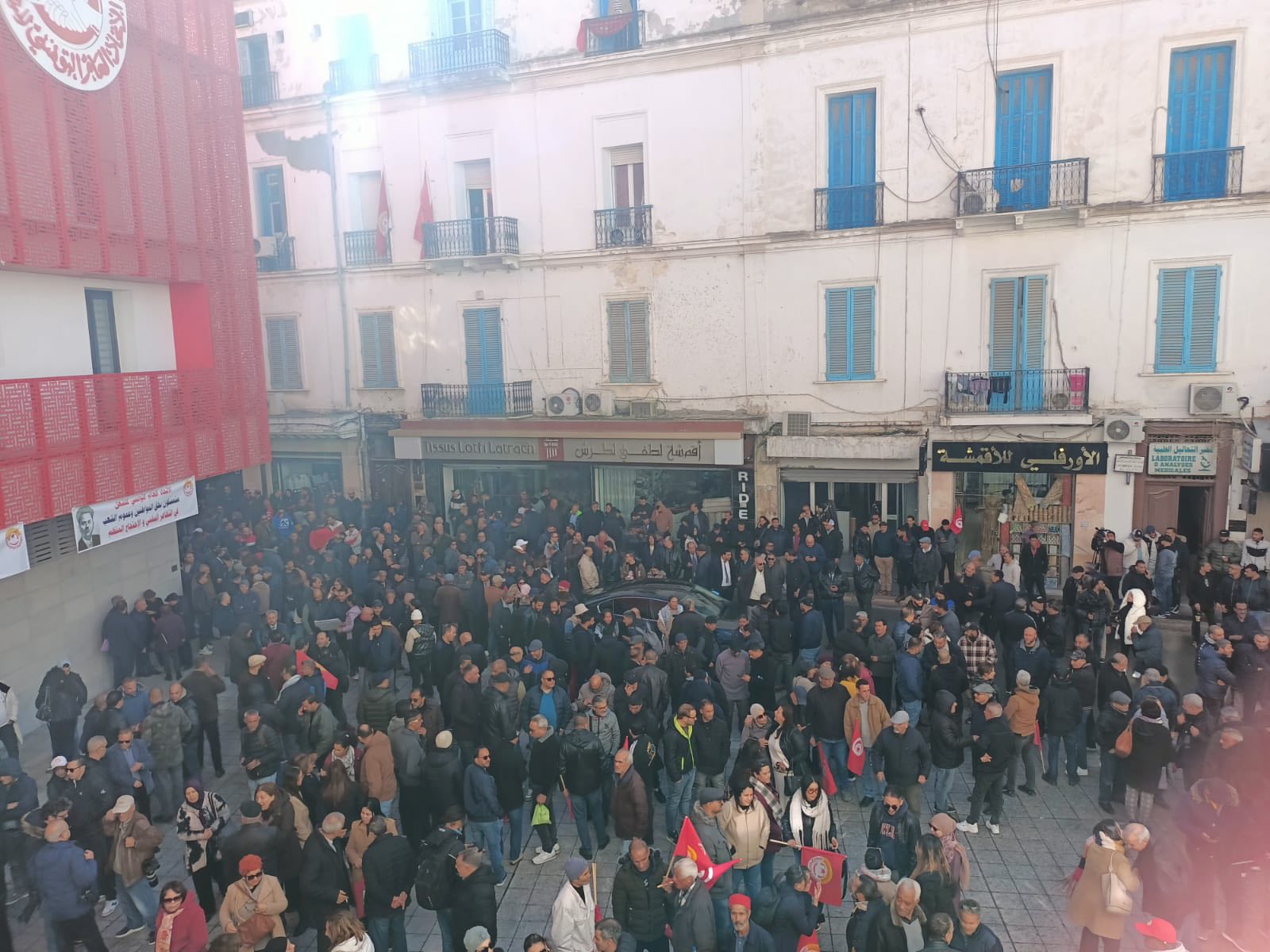 نظم اتحاد الشغل اليوم الخميس مسيرة نقابية انطلقت من بطحاء محمد علي الحامي بالعاصمة تزامنا مع إحياء الذكرى الثالثة والسبعين لاغتيال الزعيم الوطني والنقابي فرحات حشاد.