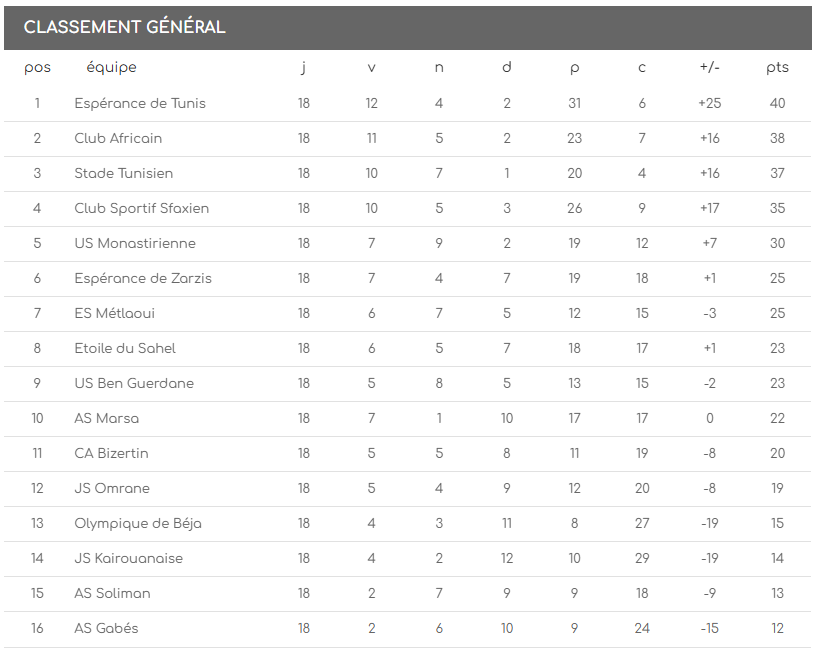 وبهذا الفوز ارتقى الملعب التونسي التونسي الى المركز الثالث برصيد 37 نقطة بفارق نقطة واحدة عن النادي الافريقي صاحب المركز الثاني وبفارق 3 نقاط عن الترجي الرياضي صاحب الصدارة، في حين تجمد رصيد مستقبل سليمان عند النقطة 13 في المركز الخامس عشر قبل الأخير.
