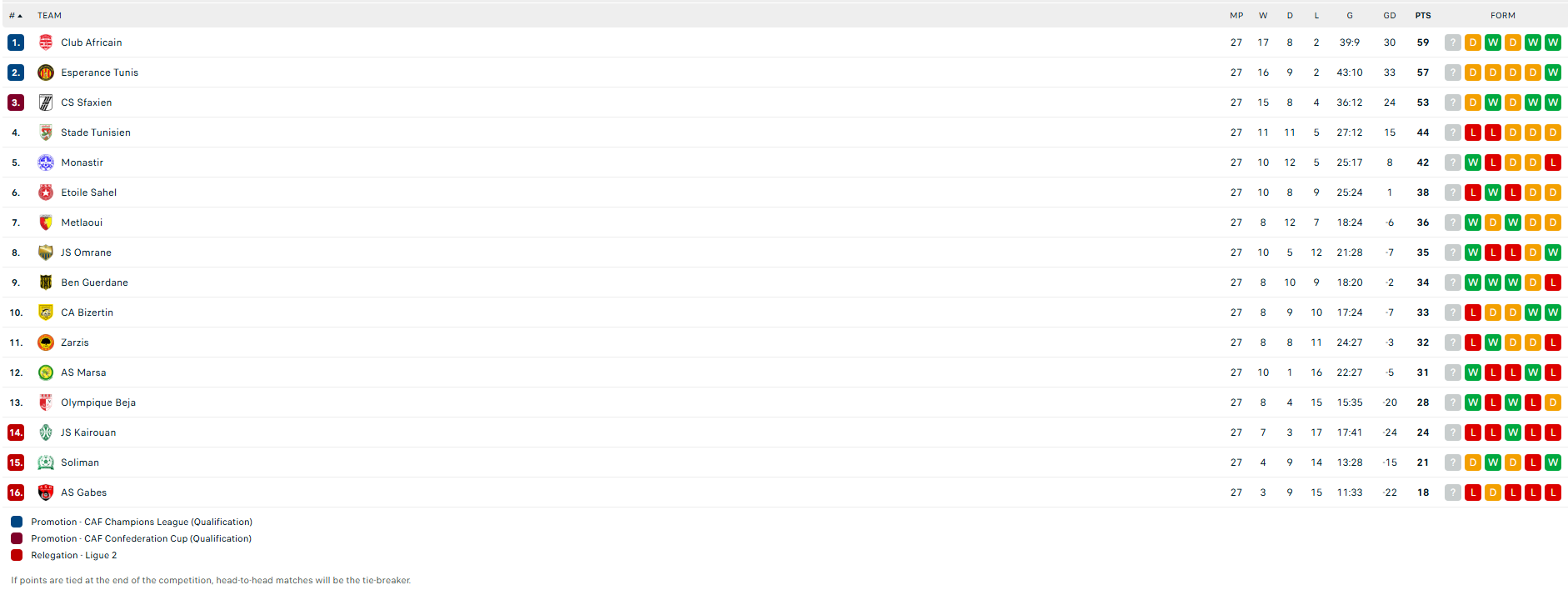 وعلى ضوء النتيجة الحاصلة أخفق الترجي الرياضي التونسي في استعادة الصدارة من النادي الافريقي قبل 3 جولات من نهاية سباق البطولة.