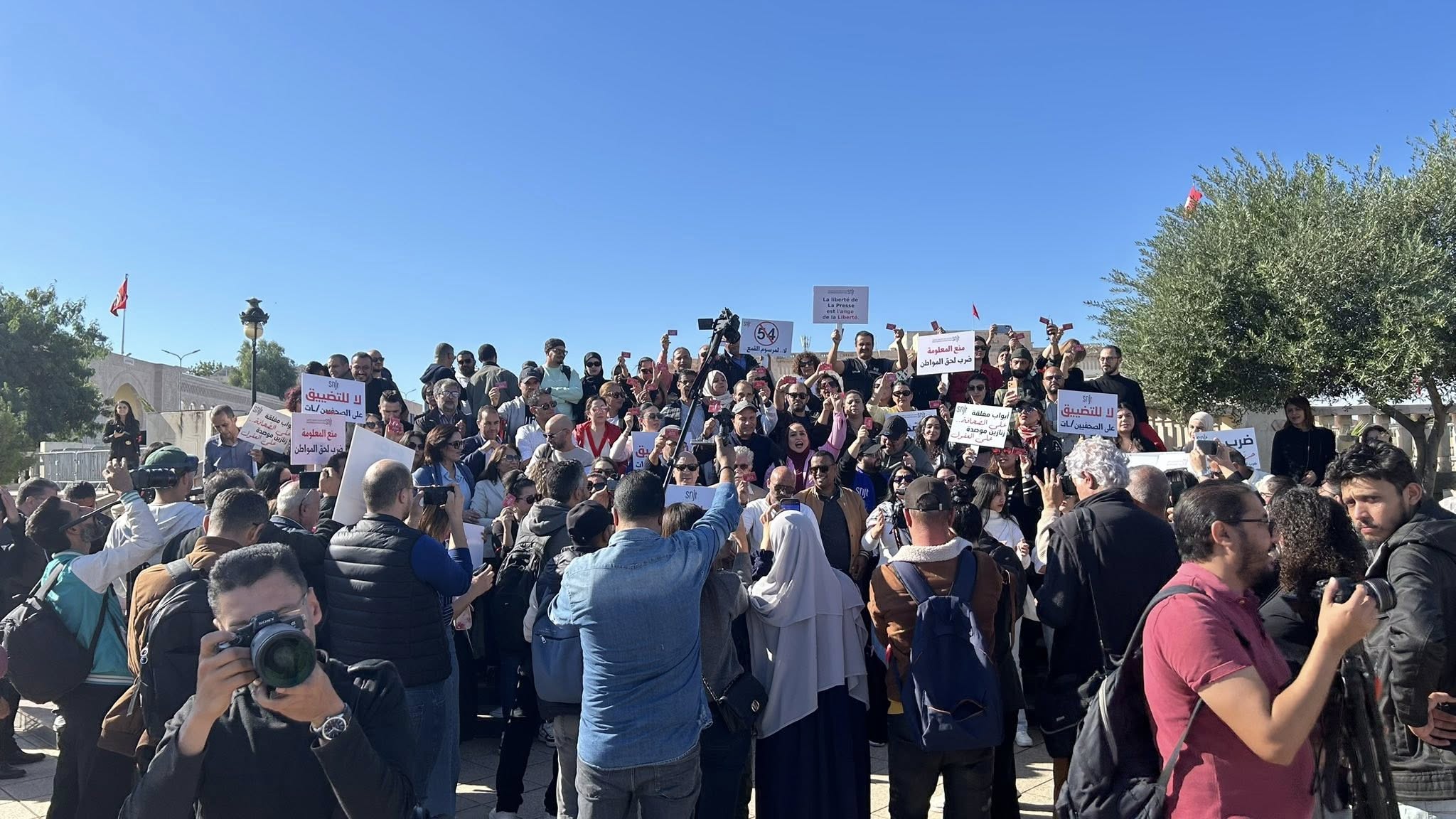 احتشد اليوم الخميس في ساحة الحكومة بالقصبة المئات من الصحفيين في وقفة اجتجاجية، كانت قد دعت لها النقابة الوطنية للصحفيين التونسين، دفاعًا عن حرية الصحافة وكرامة الصحفيين ورفضًا لكل أشكال التضييق وممارسة الضغط على العاملين في القطاع.