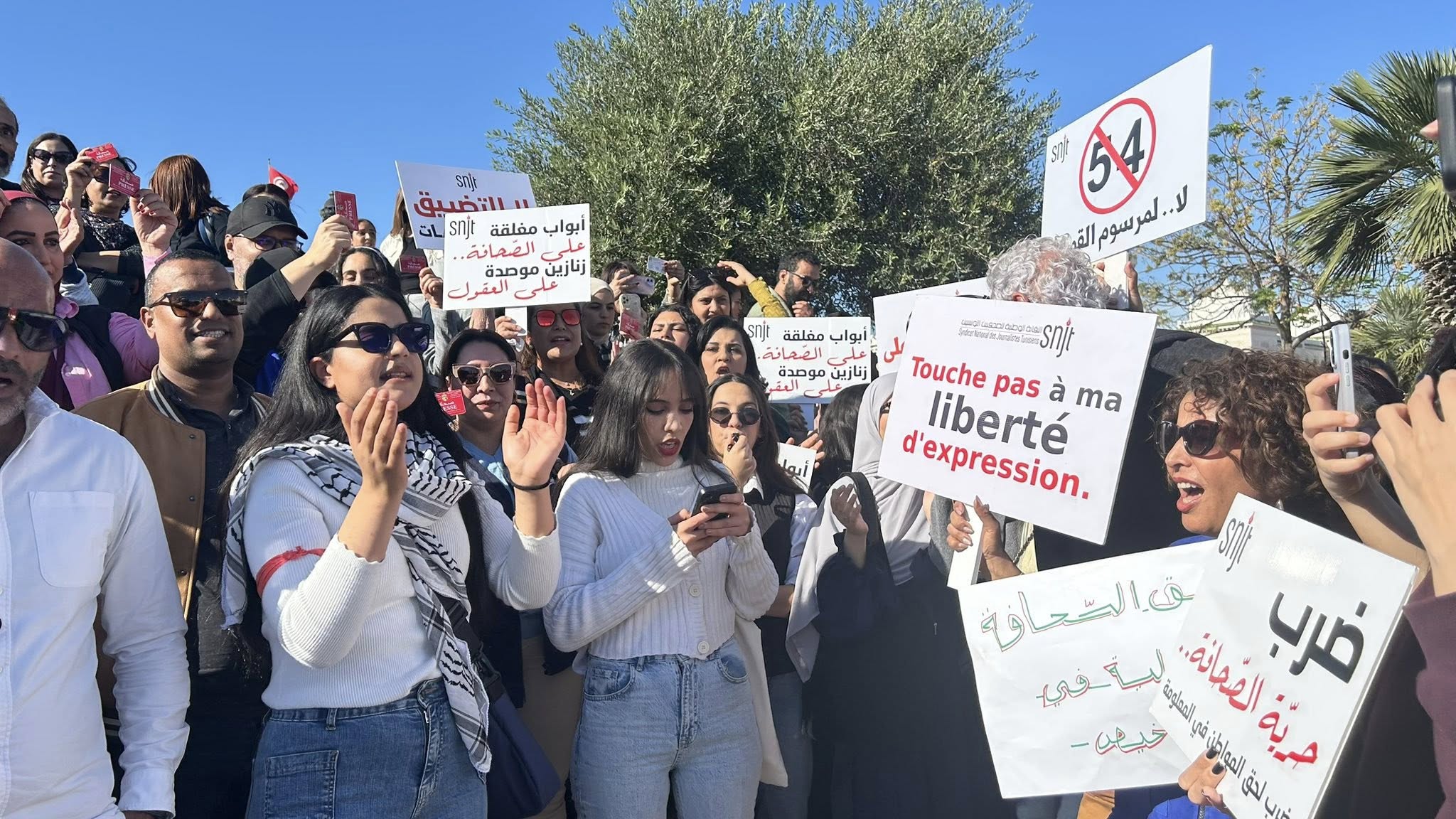 وارتدى الصحافيون الشارات الحمراء في المؤسسات الإعلامية تنديدا بالمخاطر المحدقة بقطاع الصحافة التي ازدادت وتيرتها بدرجة كبيرة منذ 25 جويلية 2025 خاصبة بعد اصدار المرسوم 54، في 2022 المتعلق بـ «للجرائم المرتبطة بأنظمة الاتصال والمعلومات»، والذي يلقى تحفظات وانتقادات شديدة من الصحفيين ومنظمات حقوقية.