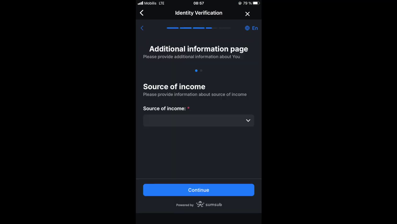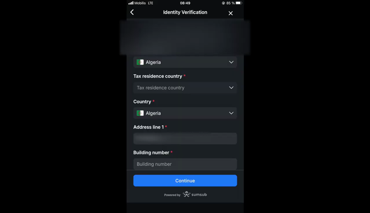 ثمّ اختيار الهوية اما بجواز سفر أو بطاقة هوية بيومترية ثم continue