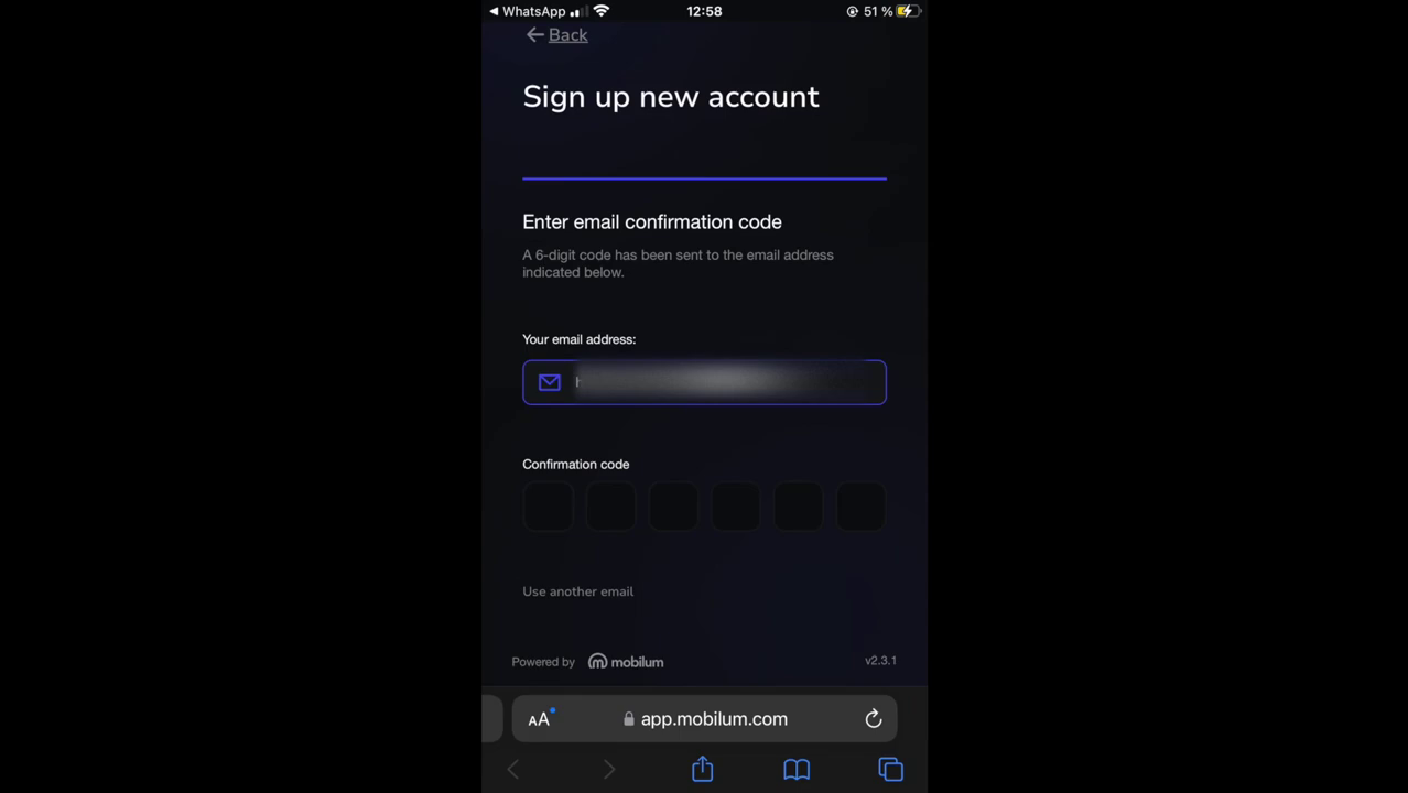 نضع الايمايل الخاص بنا و كود التحقق الذي سيصلكم على الايمايل