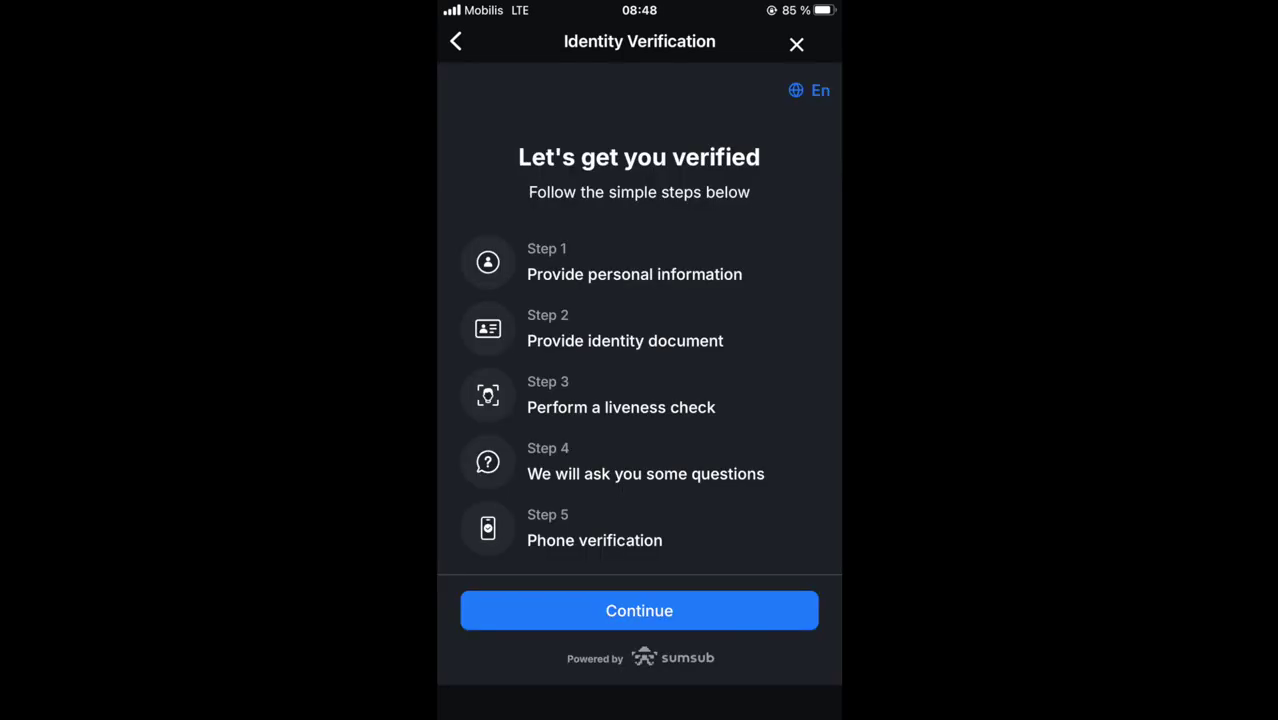 ستظهر لنا خانة لبداية التحقق والتفعيل.. نضغط start للذهاب لمرحلة تأكيد الهوية