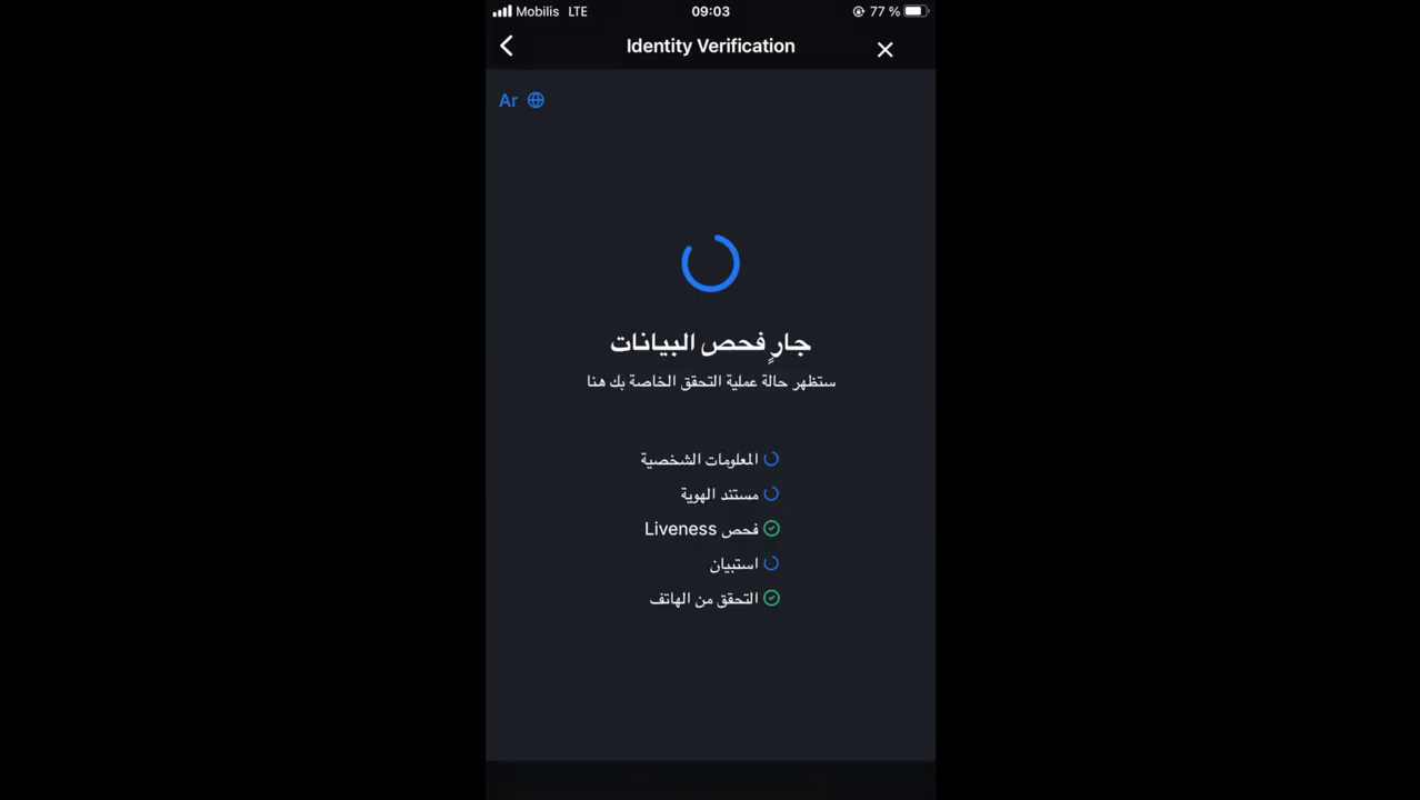 جاري فحص التحقق من الهوية والبيانات وتأخذ أقل من دقيقة