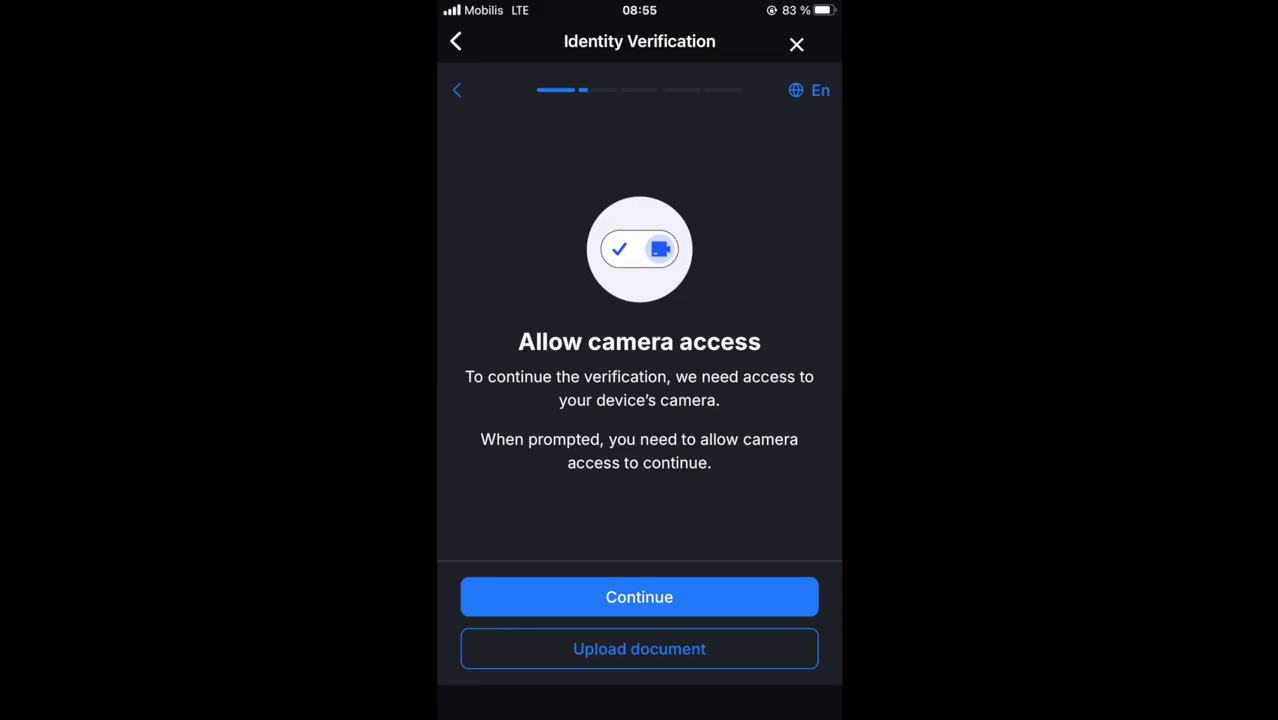 ثمّ اختيار الهوية اما بجواز سفر أو بطاقة هوية بيومترية ثم continue