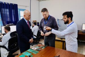 وشكّلت زيارة السفير إلى شركة ستارز للإلكترونيات محطة بارزة ضمن هذه الجولة، حيث اطّلع على سير العمل داخل واحدة من الوحدات الصناعية التي توظّف مئات العمال التونسيين. وتختص الشركة في إنتاج المعدات الإلكترونية ولوحات الدوائر المطبوعة، إضافة إلى حزم بطاريات الليثيوم، وهي مكونات تُعدّ أساسية في الصناعات التكنولوجية الحديثة، وخاصة في مجالات الطاقة والتنقل الذكي.