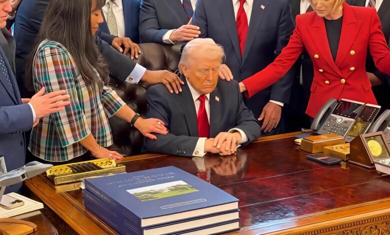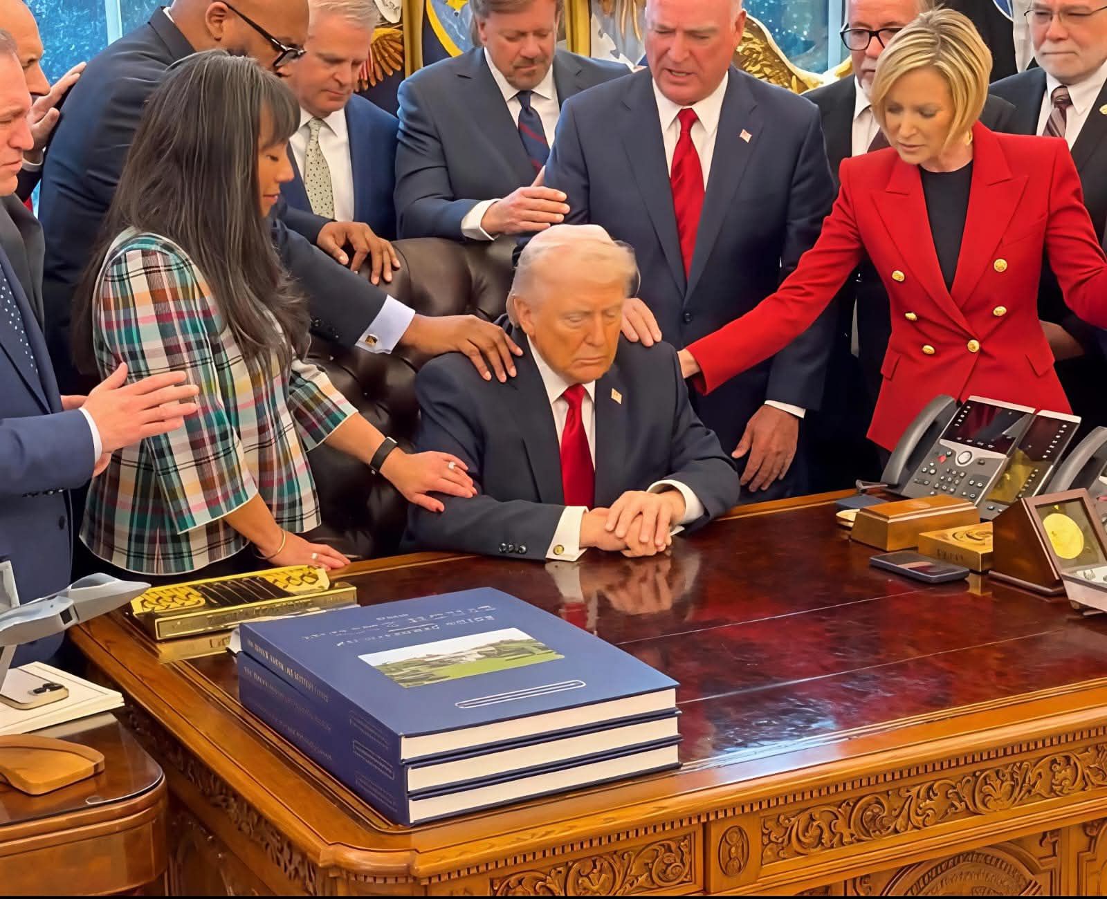 ودعا ترامب مجموعة من القساوسة من مختلف أنحاء الولايات المتحدة إلى البيت الأبيض، حيث صلّوا معه داخل المكتب البيضاوي في ظل الحرب الدائرة مع إيران، ووضع القساوسة أيديهم على الرئيس، سائلين الله أن يمنحه الهداية والحكمة، كما دعوا لحماية القوات المسلحة الأمريكية.