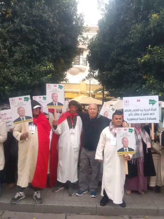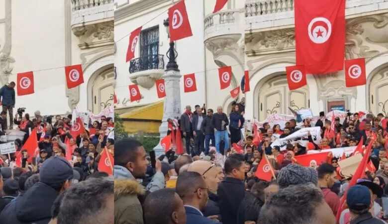 ورفع المشاركون في المسيرة عدّة لافتات وشعارات للتعبير عن رفضهم للتدخل الأجنبي في الشؤون الداخلية لتونس وللمطالبة بالمحاسبة.