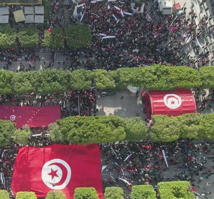 انطلقت اليوم الأربعاء مسيرة شعبيّة في شارع الحبيب بورقيبة بالعاصمة بمناسبة الذكرى 15 لاندلاع الثورة التونسية.