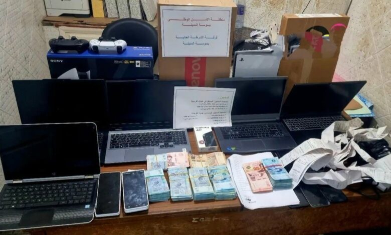 وتم حجز مبالغ مالية وعدد من السيارات الفخمة والدراجات النارية وحواسيب وهواتف جوالة وآلات خلاص إلكترونية (TPE)، يُشتبه في كونها من عائدات النشاط.