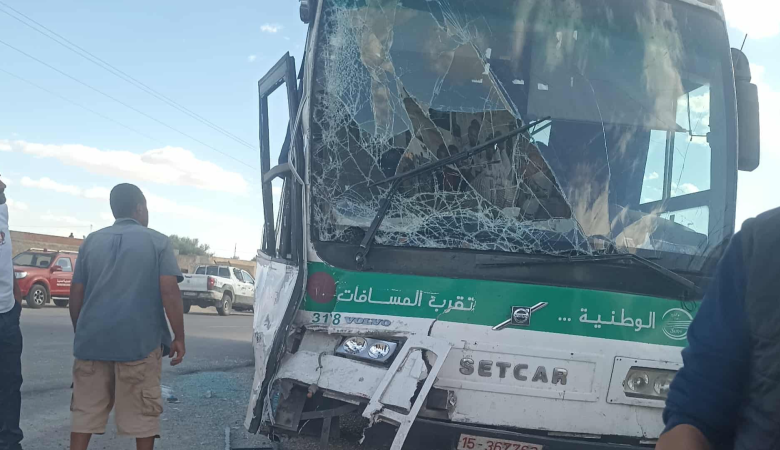 وقد أسفر الحادث عن إصابة سائق الحافلة الخاصة بجروح، إلى جانب تسجيل حالات من الهلع والفزع في صفوف الركاب.
