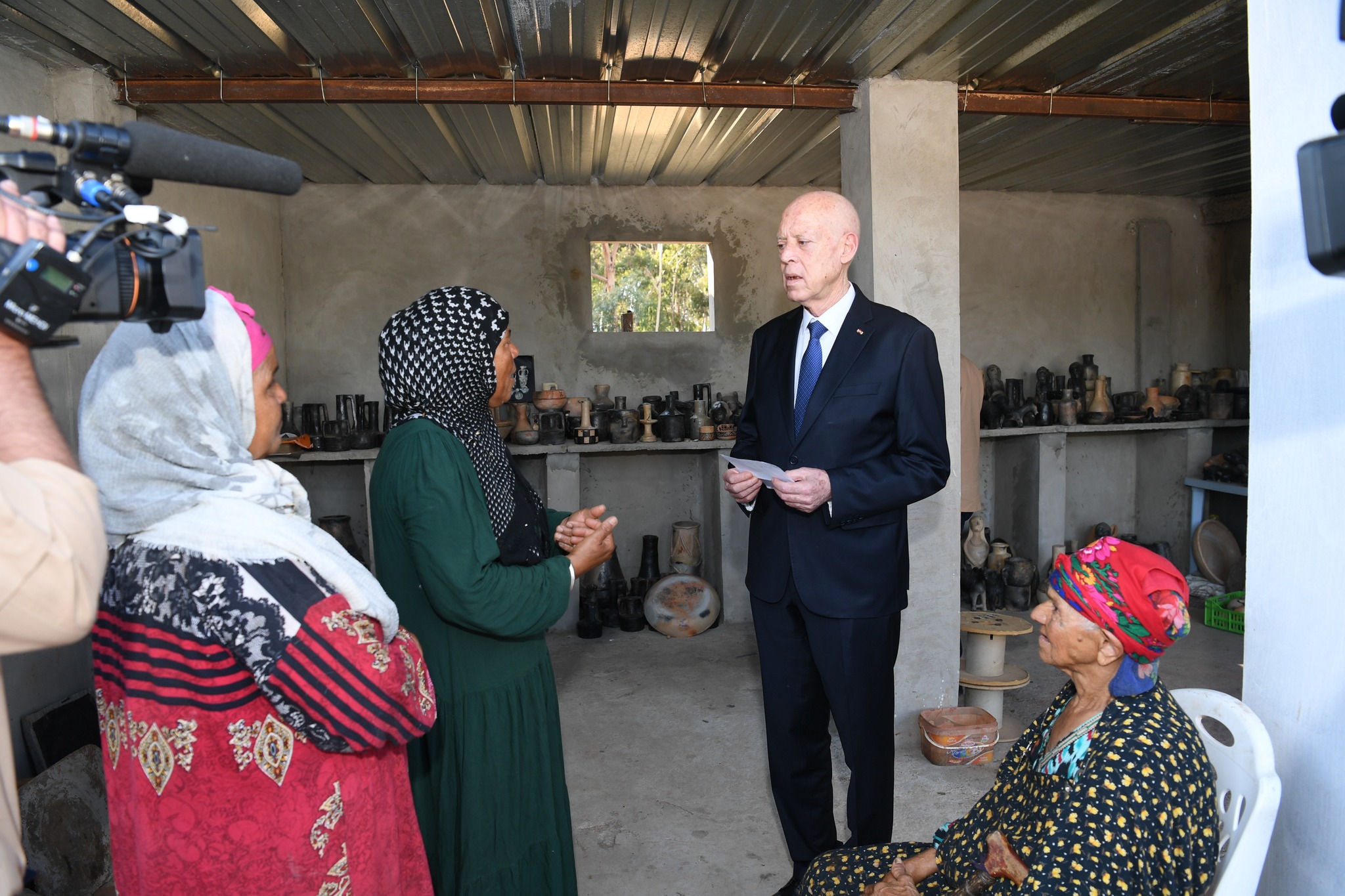 واستمع رئيس الدولة بالمناسبة، إلى تشكياتهم، خصوصا في ما يتعلق بالتعطيلات الإدراية وغياب المسؤولين، علاوة على مطالبة حرفيات الخزف الطبيعي بتركيز أكشاك لبيع منتوجهن، بعيدا عن الانتصاب الفوضوي على قارعة الطريق، وفتح افاق التصدير إزاء صعوبة تنويع مسالك الترويج لمختلف منتجاتهن الحرفية ،بما يوفر لهن مورد رزق قار ،ويكسبهن الاستقلالية الاقتصادية ،ويحقق لهن الاستقرار الاجتماعي.