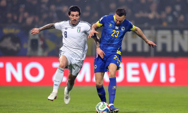 أخفق المنتخب الإيطالي في التأهل لنهائيات كأس العالم للمرة الثالثة على التوالي أثر خسارته أمام المنتخب البوسني بركلات الجزاء الترجيحية بنتيجة 1 – 4 في الملحق الأوروبي، ذلك بعدما انتهى اللقاء على التعامل الإيجابي 1-1 في الوقت القانوني والإضافي.