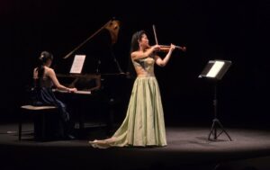 Dès les premières notes, l’atmosphère feutrée de la salle s’est transformée en un espace de dialogue interculturel. Sur scène, deux musiciennes japonaises résidant à Vienne, la pianiste Yuumi Yamaguchi et la violoniste Tomoko Maeda, ont livré un récital à la fois exigeant et profondément accessible, tissant des liens subtils entre les traditions musicales de plusieurs horizons